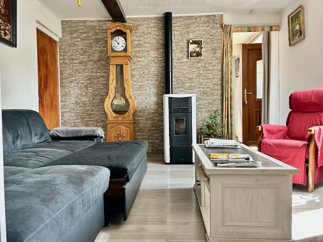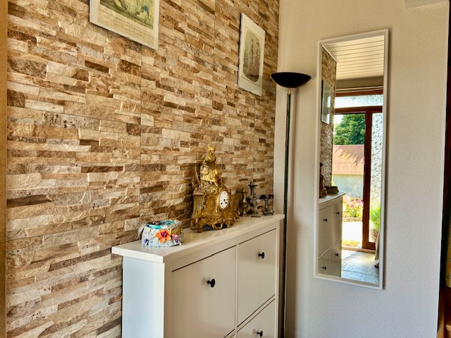 Derrière sa façade jaune pleine de charme, cette maison nichée au cœur de la verdure offre un véritable havre de paix. Baigné de lumière naturelle, l’intérieur séduit par son atmosphère chaleureuse et accueillante, où chaque espace invite à la détente.