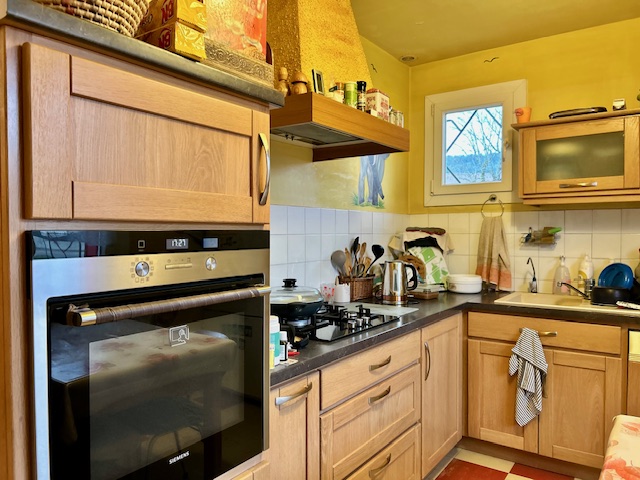 Vous y trouverez au 1er étage, une Cuisine aménagée et équipée, une
